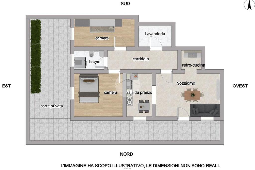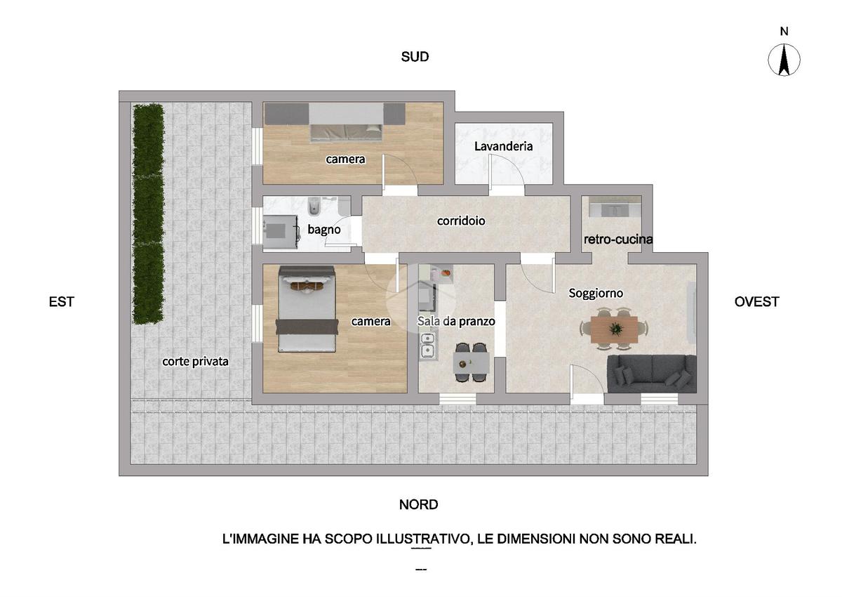 Vero punto di forza dell'immobile è la corte esterna di 70mq pavimentanta e con giardino, uno spazio esclusivo dove organizzare cene sotto le stelle, far giocare i bambini o semplicemente godersi un calice di vino locale al tramonto, avvolti dalla massima privacy.