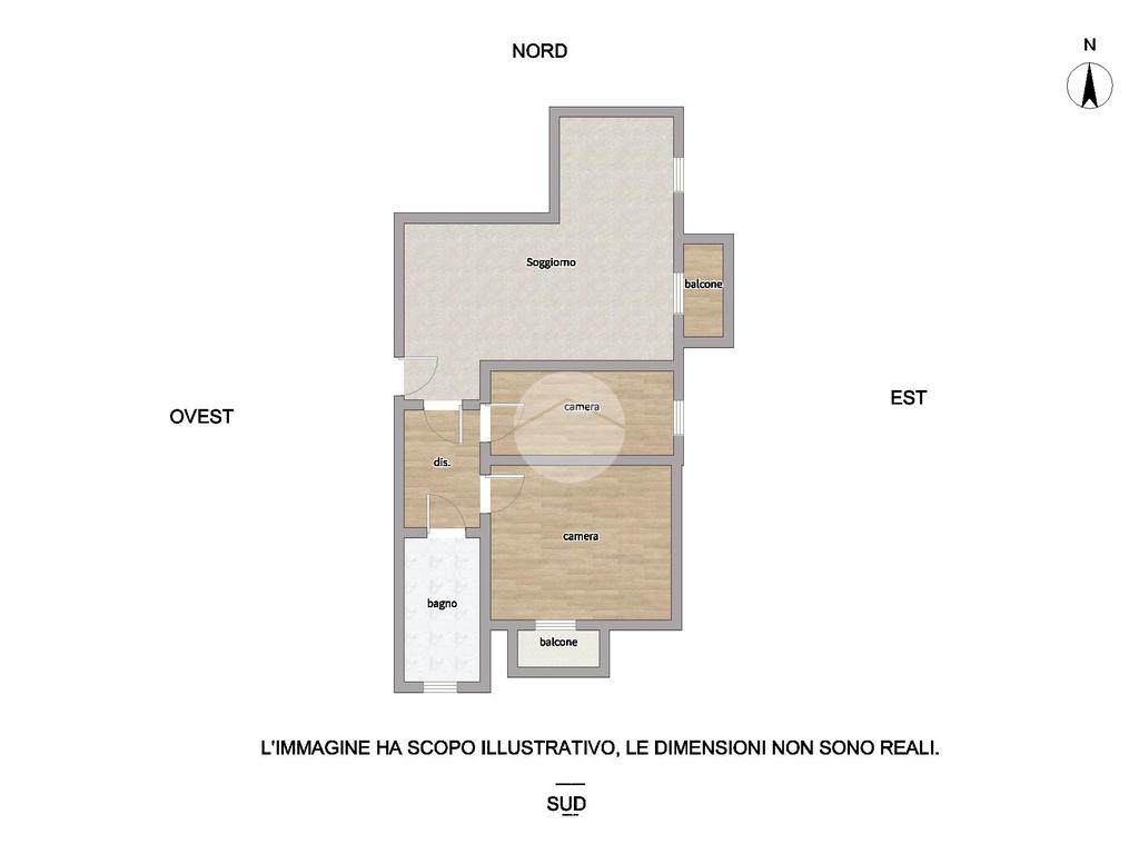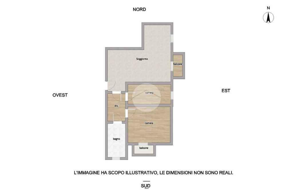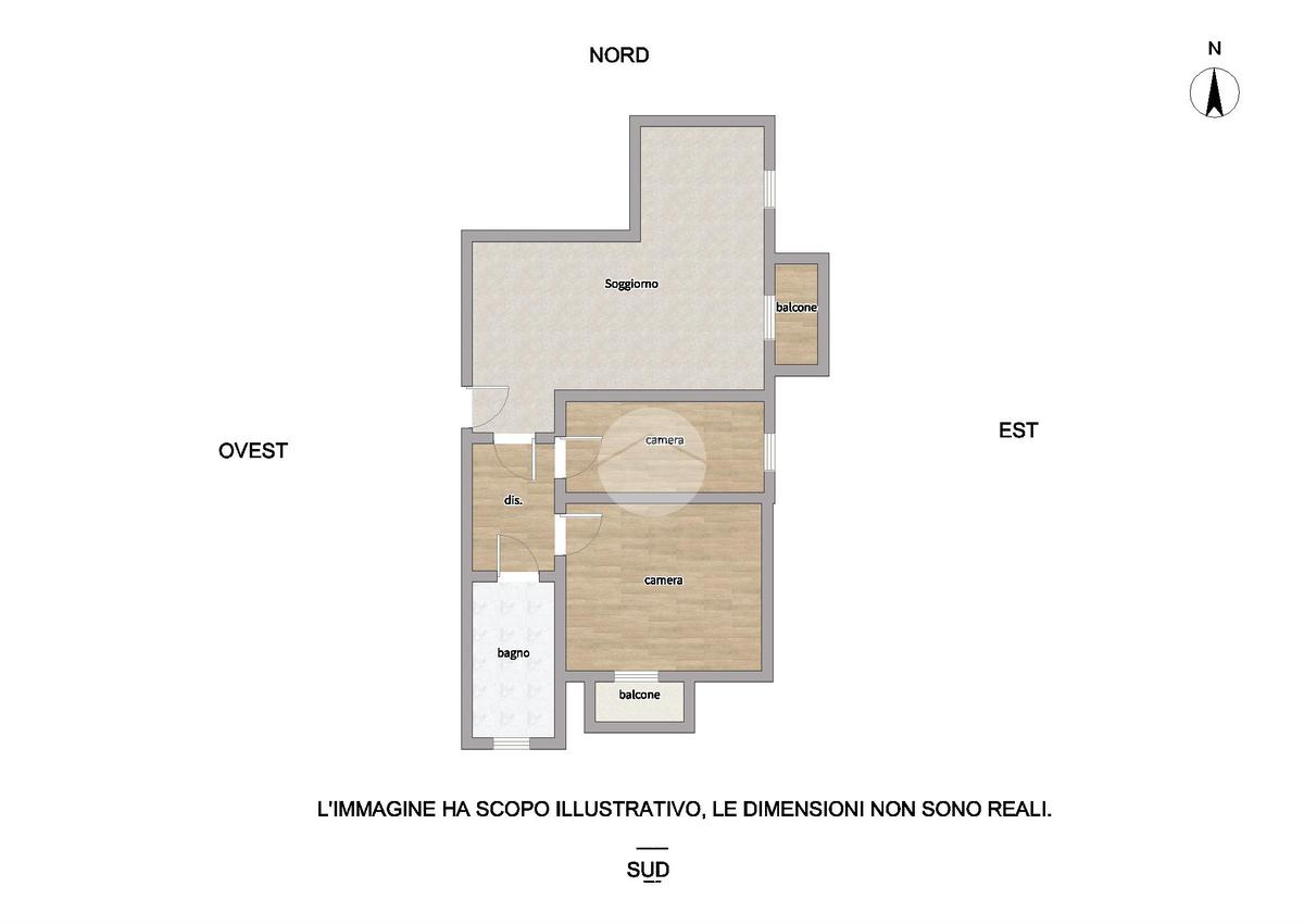 L’ingresso si apre su un luminoso soggiorno con accesso al balcone, dove trova spazio anche la cucina, creando un ambiente pratico e conviviale. Un disimpegno conduce alla camera singola, perfetta come studio o stanza ospiti, e alla camera matrimoniale, anch’essa con uscita sul balcone. Completa la zona notte un bagno finestrato dotato di vasca.