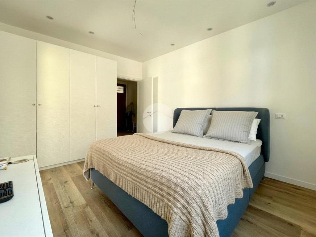 La zona notte è composta da due camere da letto, di cui una impreziosita da una pratica cabina armadio, e da un bagno finestrato con doccia moderna.